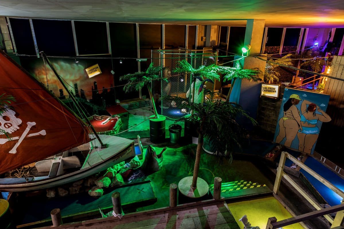 Enter a realm of Tropical Terror – this course is scattered with the skulls of failed players. Pablo takes no prisoners as you putt through UFC bears, pirate speedboats and glitter temples.