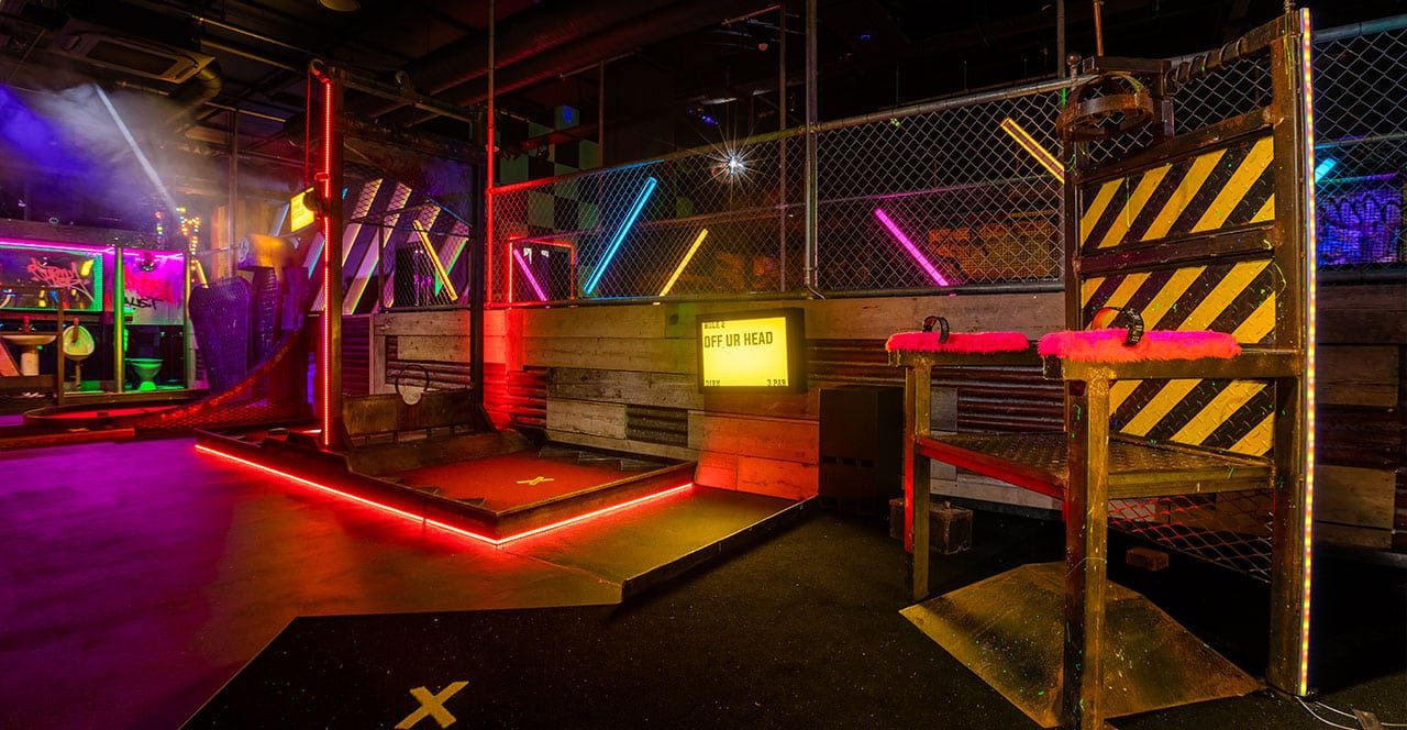 Who can be tee’d off with Dirk? These 9-holes are set in an abandoned warehouse with distorted floors and furry walls, packed with pure retro 90s tunes. Dare to putt yourself in Dirk’s acid electric chair? Book now.